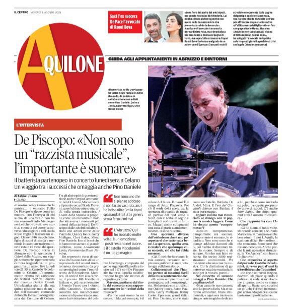 «Ci ho suonato tante volte. Mi ricordo concerti a Scurcola Marsicana, si mangiava anche benissimo. E poi L’Aquila, la scalinata di San Bernardino… che emozione. Sono posti che restano nel cuore. Anche perché la mia agenzia è abruzzese, la Ce Agency, con base a Giulianova».