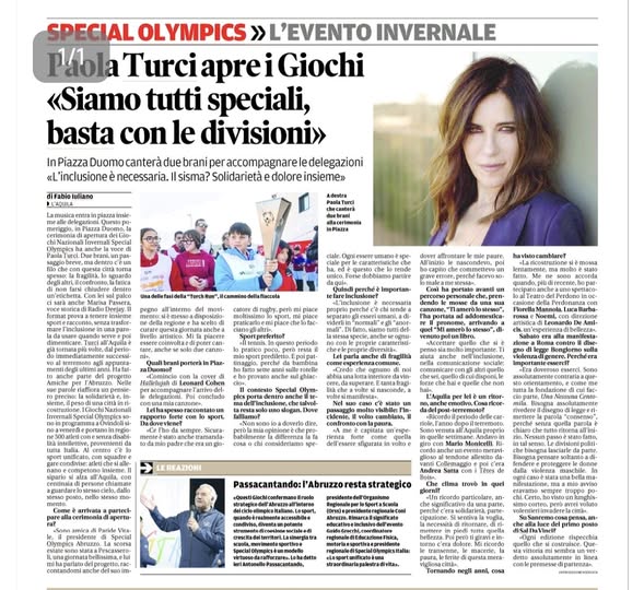La musica entra in piazza insieme alle delegazioni. Questo pomeriggio, in Piazza Duomo, la cerimonia di apertura dei Giochi Nazionali Invernali Special Olympics ha anche la voce di Paola Turci. Due brani, un passaggio breve, ma dentro c’è un filo che con questa città torna spesso: la fragilità, lo sguardo degli altri, il confronto, la fatica di non farsi chiudere dentro un’etichetta. Con lei sul palco ci sarà anche Marisa Passera, voce storica di Radio Deejay. Il format prova a tenere insieme sport e racconto, senza trasformare l’inclusione in una parola da usare quando serve e poi dimenticare. Turci all’Aquila è già tornata più volte, dal periodo immediatamente successivo al terremoto agli appuntamenti degli ultimi anni. Ha fatto anche parte del progetto Amiche per l’Abruzzo. Nelle sue parole riaffiora un pensiero preciso: la solidarietà e, insieme, il peso di una città in ricostruzione. I Giochi Nazionali Invernali Special Olympics sono in programma a Ovindoli sino a venerdì e portano in regione 500 atleti con e senza disabilità intellettive, provenienti da tutta Italia. Al centro c’è lo sport unificato, con squadre e gare condivise: atleti che si allenano e competono insieme. Il sipario si alza all’Aquila, con centinaia di persone chiamate a guardare lo stesso cielo, dallo stesso posto, nello stesso momento.